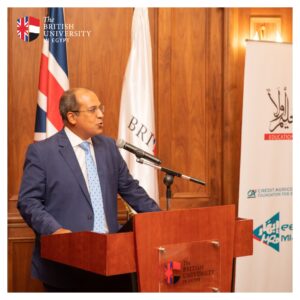 In the partnership with EBHAR Misr program, the Office of Enterprise at The British University in Egypt launched a tailored three-day training program for students from several public national universities and schools who are interested in technology and science. The program focused on delivering sessions about different fields of study and how attendees can enhance their skills to fill the market gap. The students were introduced to the University’s various engineering labs and were able to experiment with materials themselves under the supervision of British University staff and students.