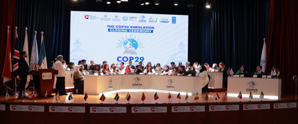 The British University in Egypt and UNDP Egypt proudly organised the third edition of the annual COPSimulation model, an annual youth-led climate conference that brought students from around the world to simulate the COP and engage with country delegates and representatives of international climate stakeholders.